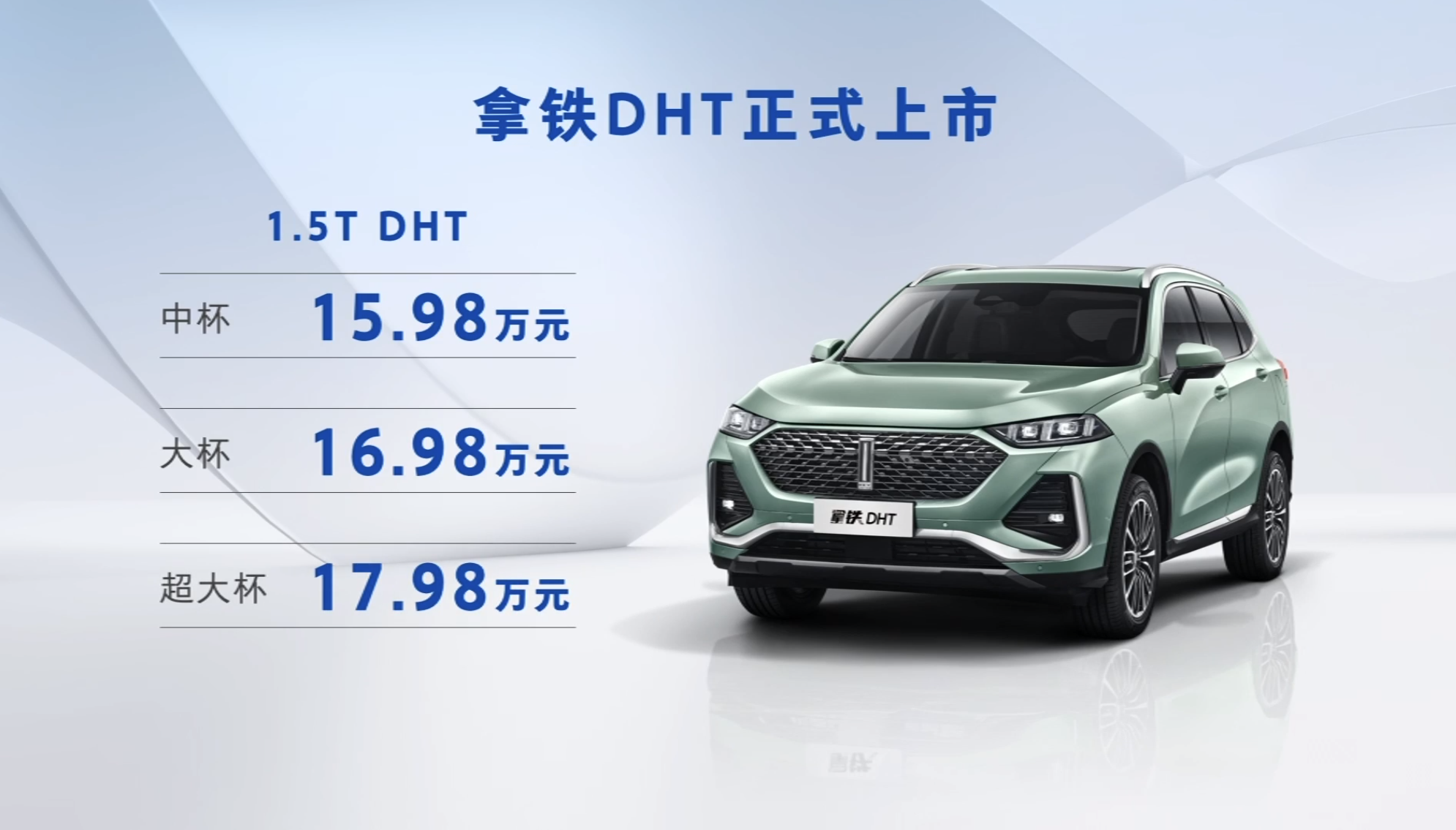 随着国内市场逐步混动化、电动化,魏牌旗下的拿铁DHT车型在上海车展首发后一直受到消费者的广泛关注。今日(12月17日),魏牌拿铁DHT终于迎来了正式上市,共推出3款车型,售价区间为15.98-17.98万元,并推出了智购尊享、智保无忧、智享随心三重好礼。下面,就跟圈哥来进一步品尝一下魏派这杯拿铁,看它到底香不香?...[详情]