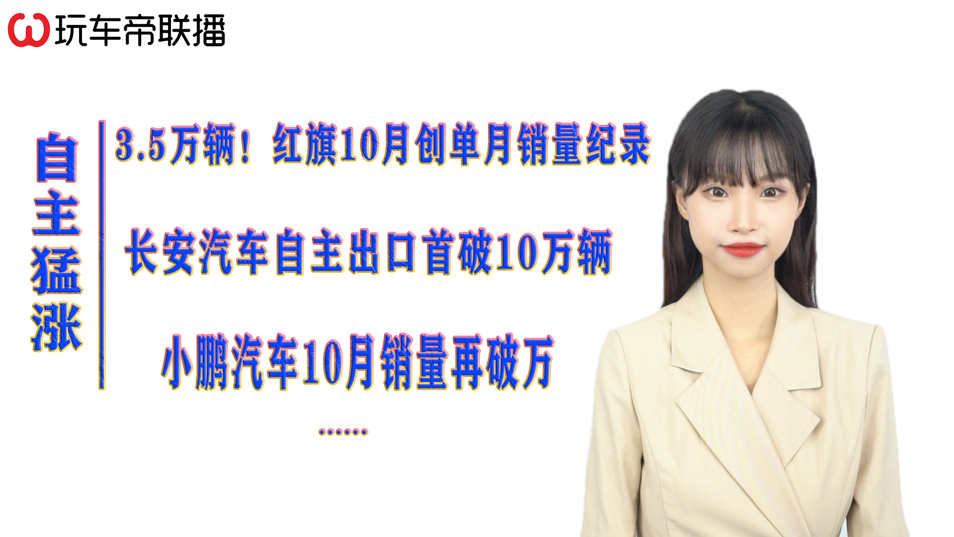 红旗10月3.5万辆创单月销量纪录、长安汽车自主出口首破10万辆、小鹏汽车10月销量再破万、上汽大众ID.4 X中保研测评全优、特斯拉召回Model 3和Model Y、美国电动汽车税收优惠提案遭多国反对、丰田SUPRA远山灰限量版上市、 2022款比亚迪宋Pro DM-i11月下旬开始预售、全新SL AMG GT继任者或2023年推出、神龙汽车前10月销量同比增88%...[详情]
